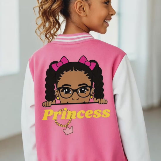 Calling all trendsetting mommies! Feast your eyes on the Custom Princess Varsity Jacket, the ultimate fashion-forward coat for your beautiful daughter between the ages of 3 and 12. Made exclusively for the black and brown community, this jacket oozes uniqueness and style. But that's not even the best part – it can be personalized with her name! Talk about turning heads and stealing the show! And you know what's even more exciting? This fabulous find is not available in your average clothing stores. Nope, it's a limited edition piece that will make your little one stand out from the crowd. Oh, and did we mention it's ridiculously affordable? Grab yours now to secure this unbeatable deal. Fashion has never been this fun or budget-friendly!